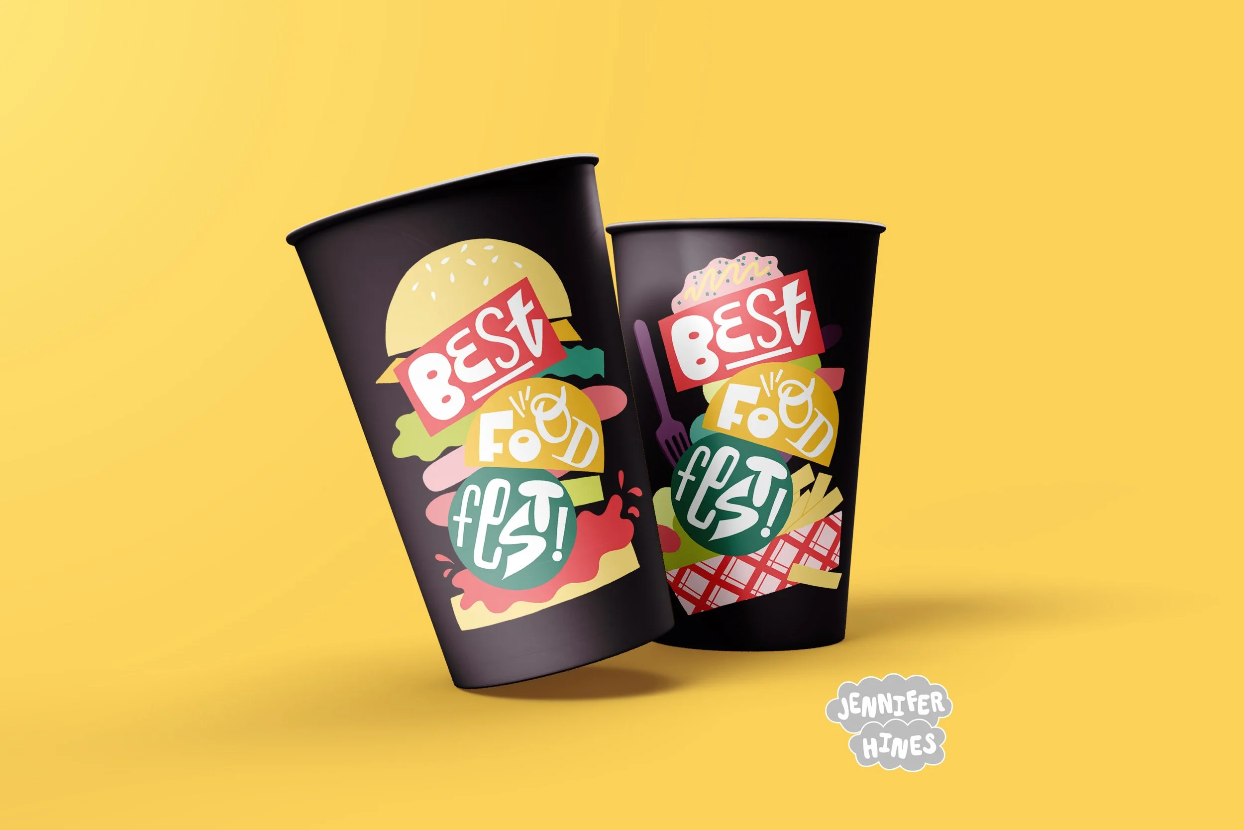The food festival logo illustrations featured on branded cups for the festival branding.