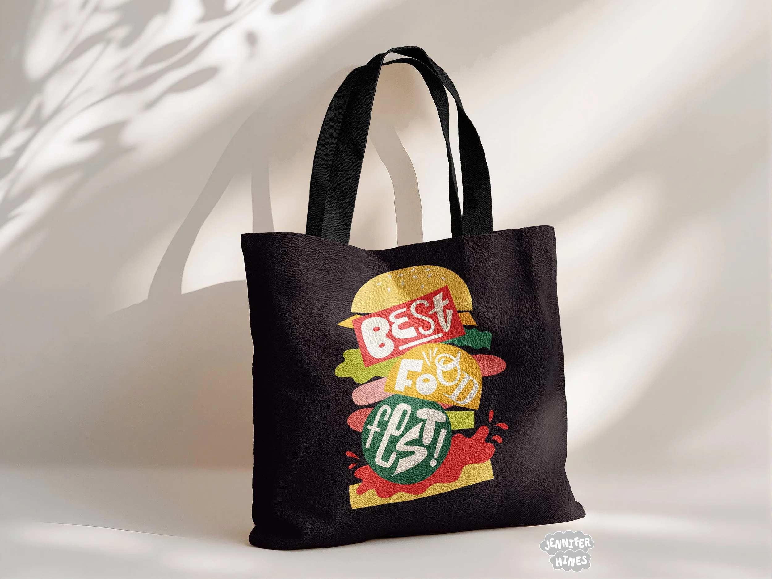 The stacked food version of the food festival logo illustration creates a super fun tote bag for some nice illustrated branded merchandise to advertise the food festival!